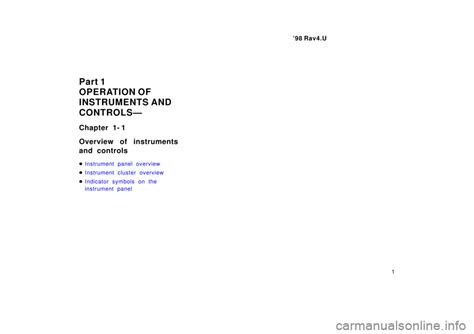 Read E-Book Online 1998 Toyota Rav4 Overview Of Instruments And Controls Manual